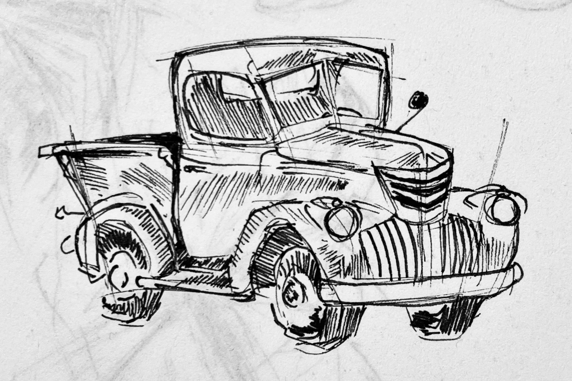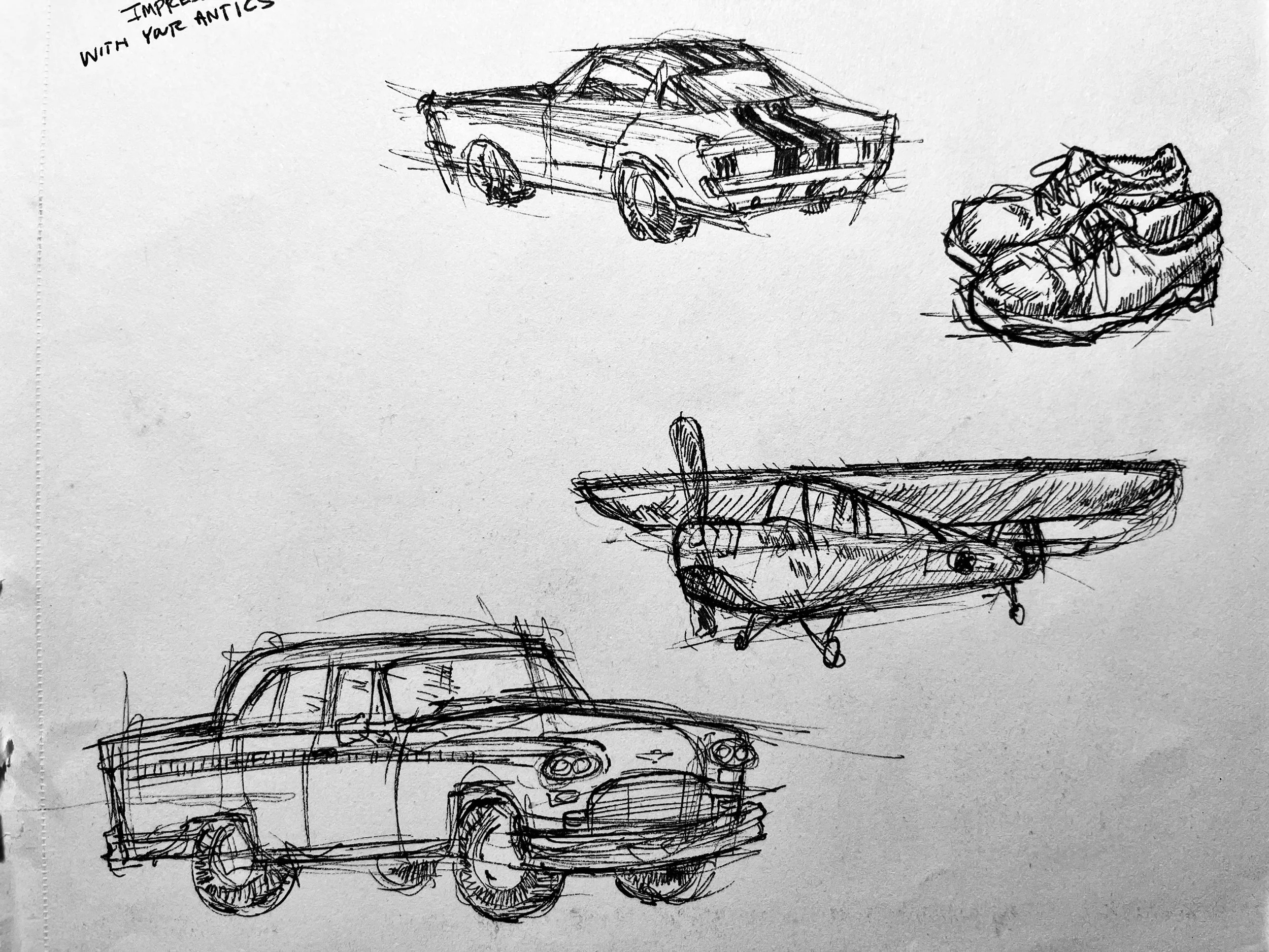 bold, expressive line work brings vehicles, objects, characters, and environments to life with immediacy and character. Through rapid yet precise hatching, cross-contouring, and gestural mark-making, my drawings explore form, proportion, lighting, and storytelling in a single medium—skills that translate seamlessly into digital concepting, character turnaround sheets, prop design, and visual development for animation, games, and film.